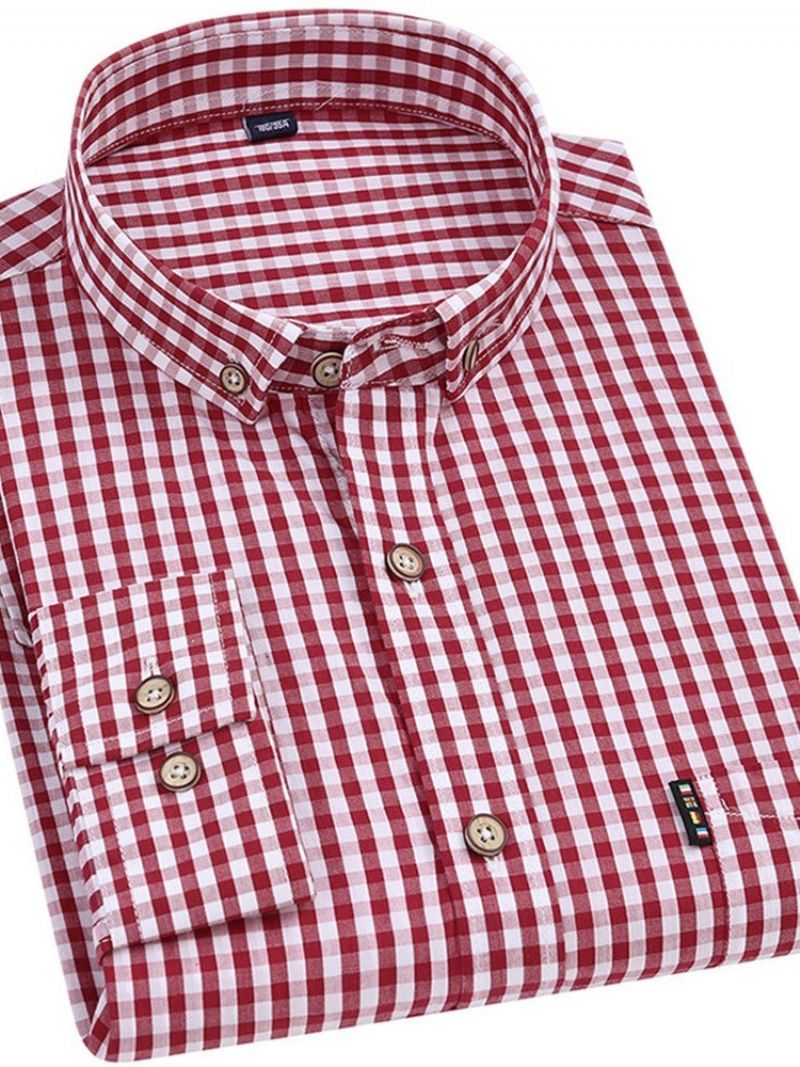 Afslappet Plaid Lapel Spring Slim Shirt Til Mænd