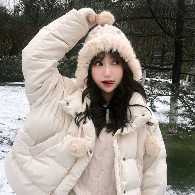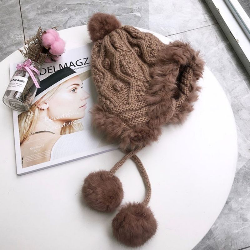 Almindelig Pompon Uldgarn Strikkede Hatte Til Kvinder