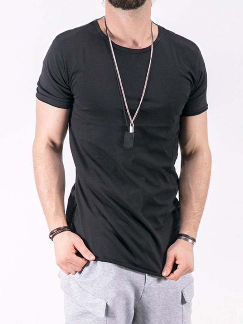 Almindelig Rund Hals Afslappet Slank Trøje Mikroelastisk Herre T-Shirt