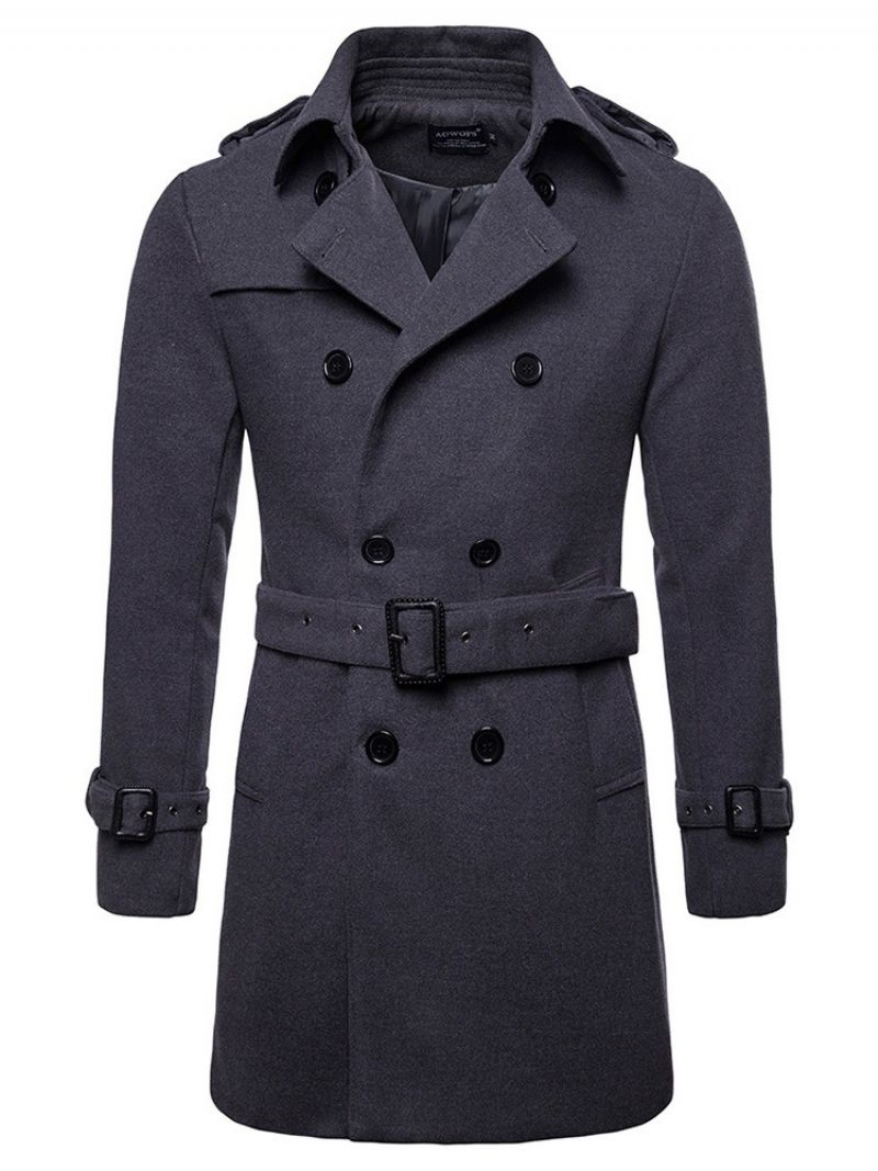 Almindelig Tynd Mellemlængde Uldærtefrakke Til Mænd Med Bælte