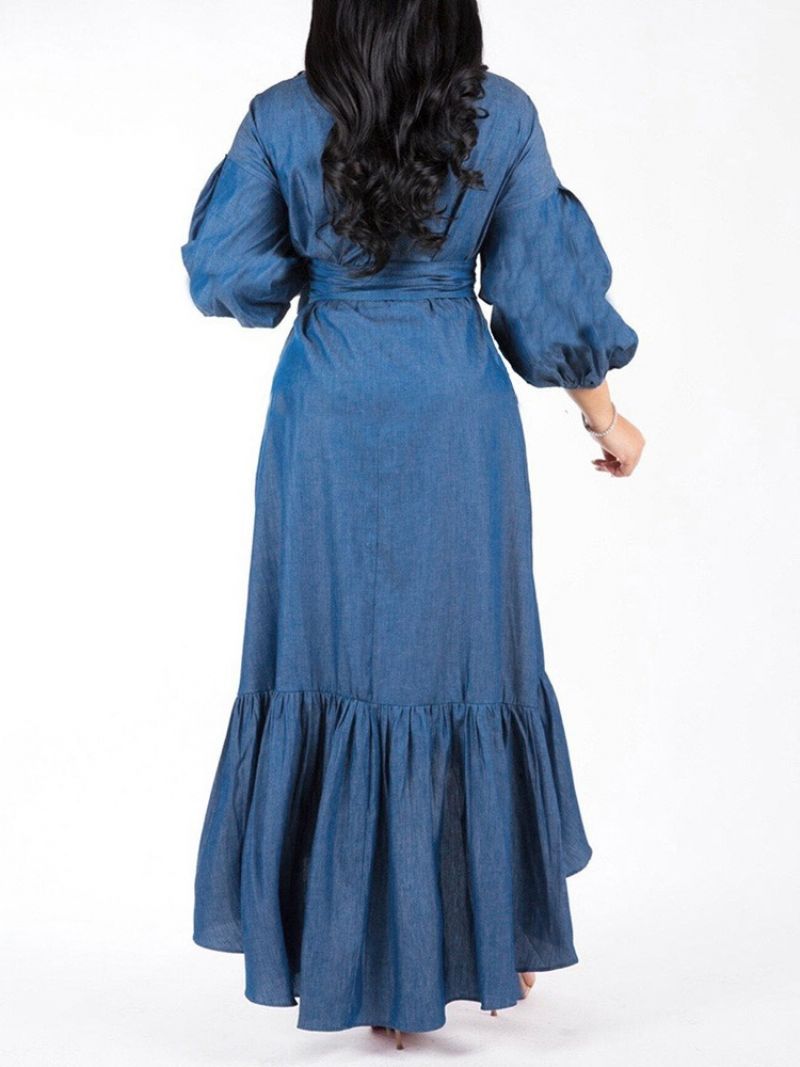 Asymmetrisk V-Hals Ni Punkters Ærmer Kvinders Snørebåndskjole