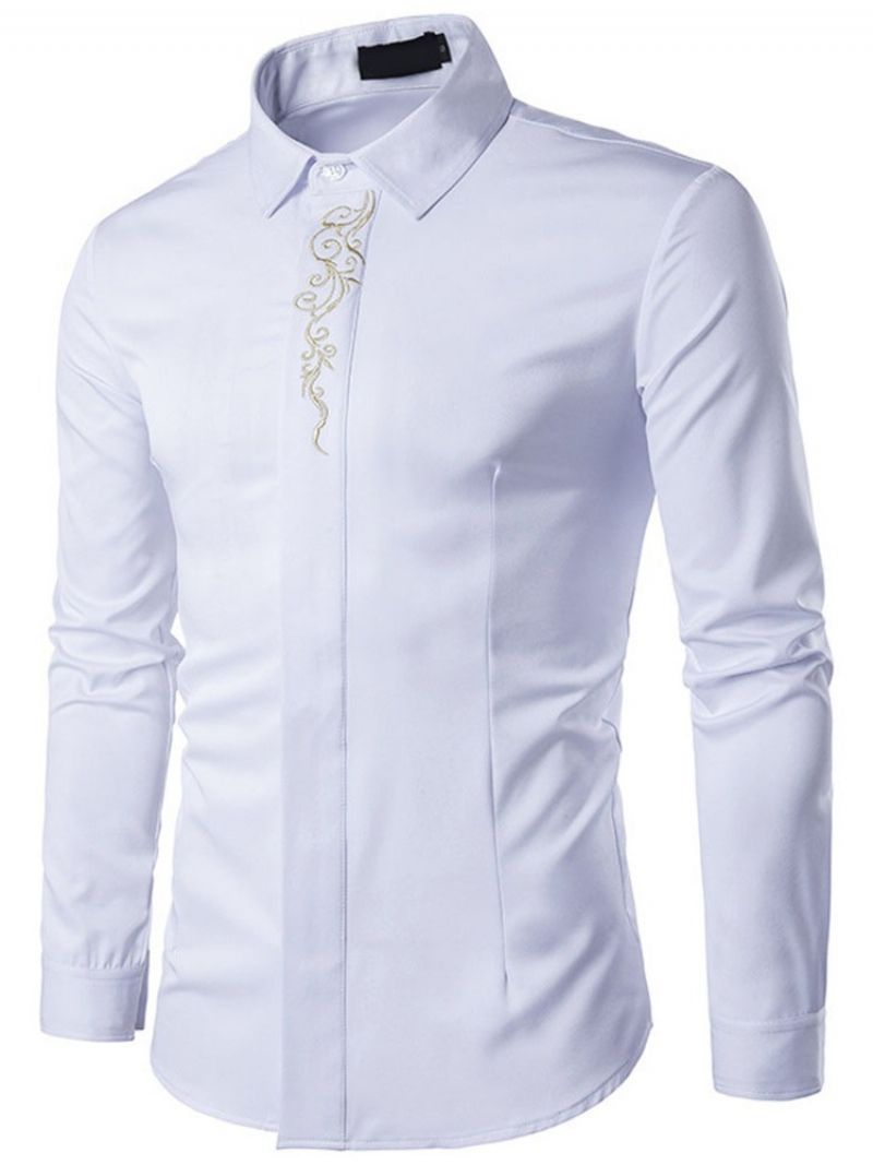 Blomsterreversbroderi Til Mænds Slim Efterårsskjorte