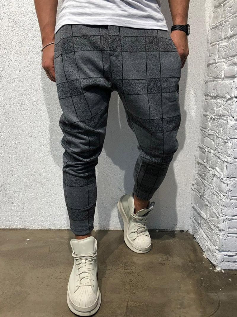 Blyant Plaid Print Mid Waist Style Mænds Afslappede Bukser