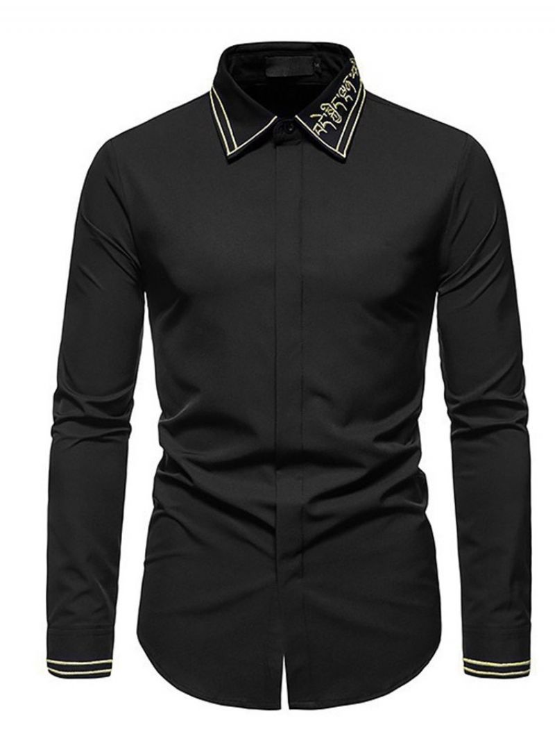 Broderi Revers Koreansk Enkeltradet Slank Skjorte