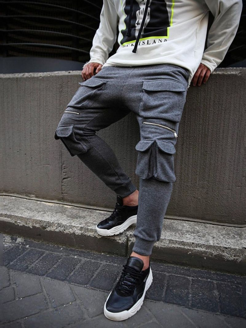 Cargo Bukser Almindelig Overordnet Lynlås Mid Talje Mænds Afslappede Bukser