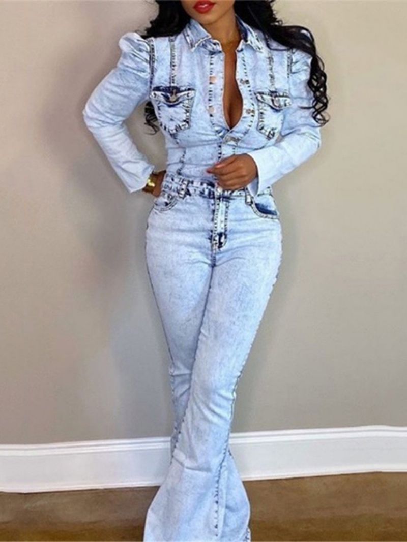 Casual Fuld Længde Slidt Bellbottoms Slim Jumpsuit