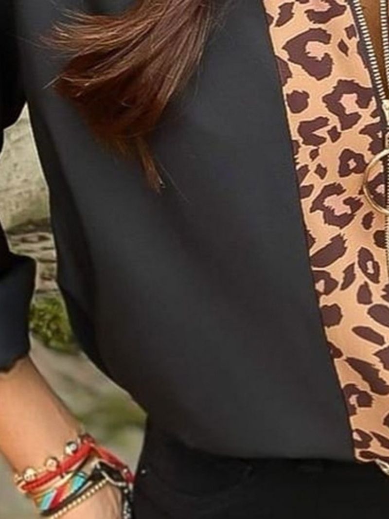 Color Block Lapel Print Standard Langærmet Bluse