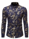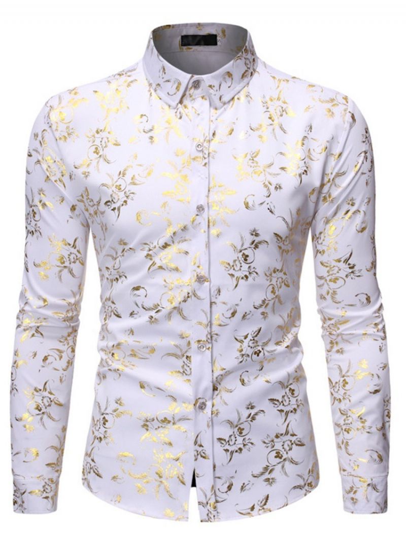 Color Block Single-Breasted Lapel Print Slim Shirt Til Mænd