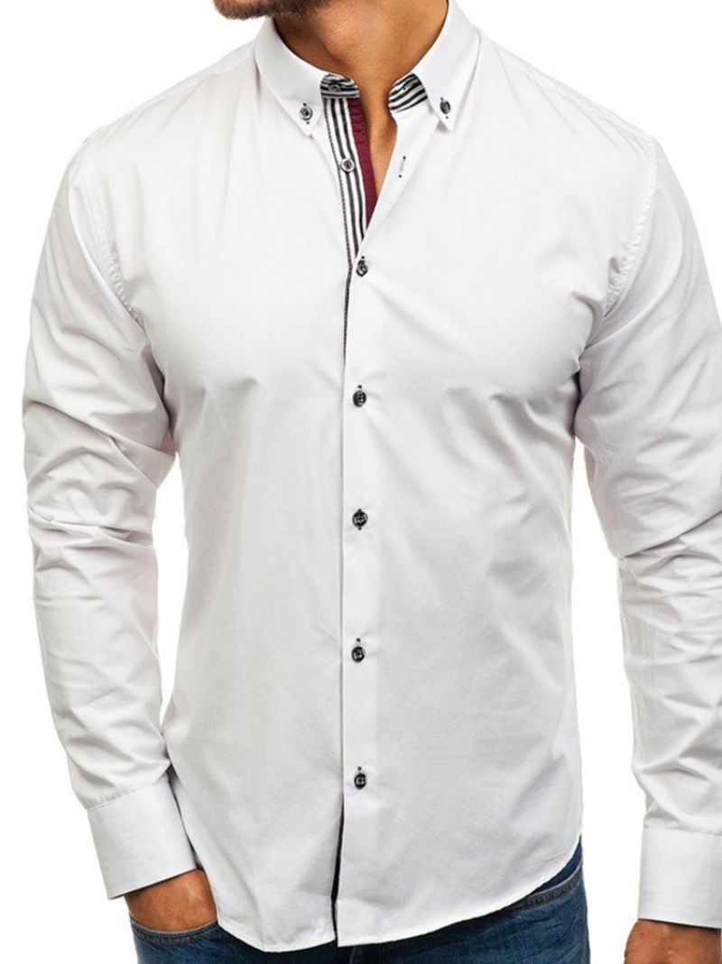 Ensfarvet Europæisk Lapel Slim Fall-Skjorte