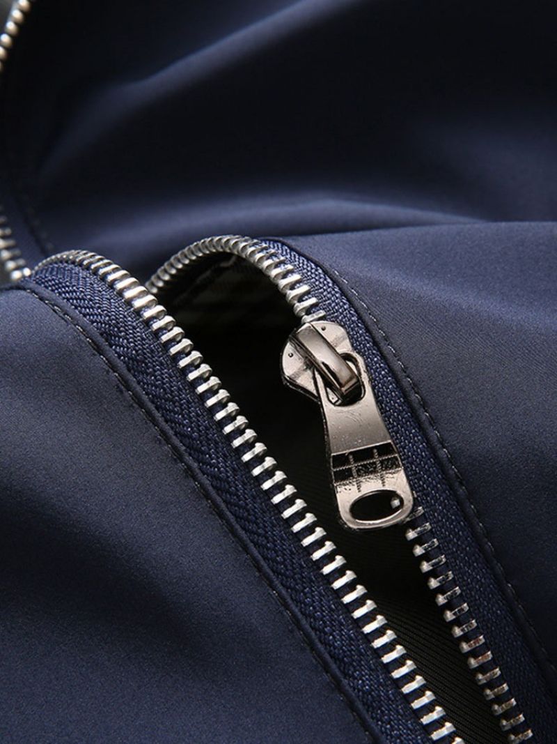 Ensfarvet Herrestandskrave Efterårslynlåsjakke