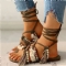 Flad Med Rund Tå Lace-Up Patchwork Damesandaler