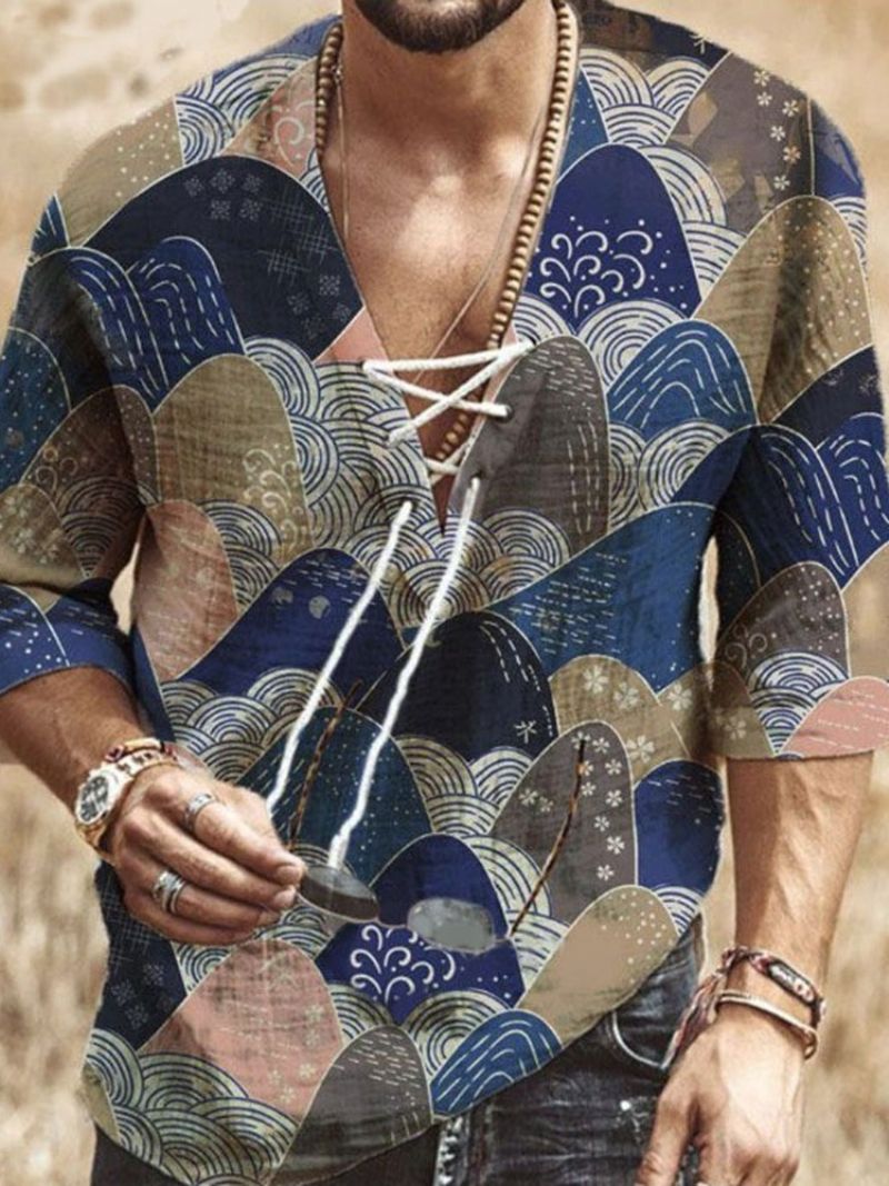 Floral V-Hals Print Lige Efterårs Herreskjorte