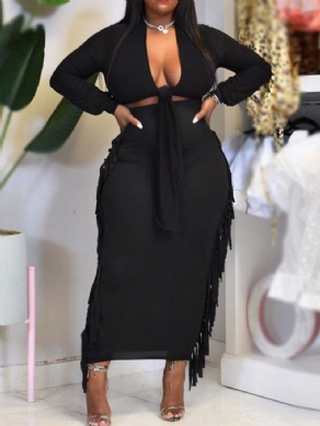 Jakke Mode Almindelig Lynlås Blyant Bukser To Stykke Sæt