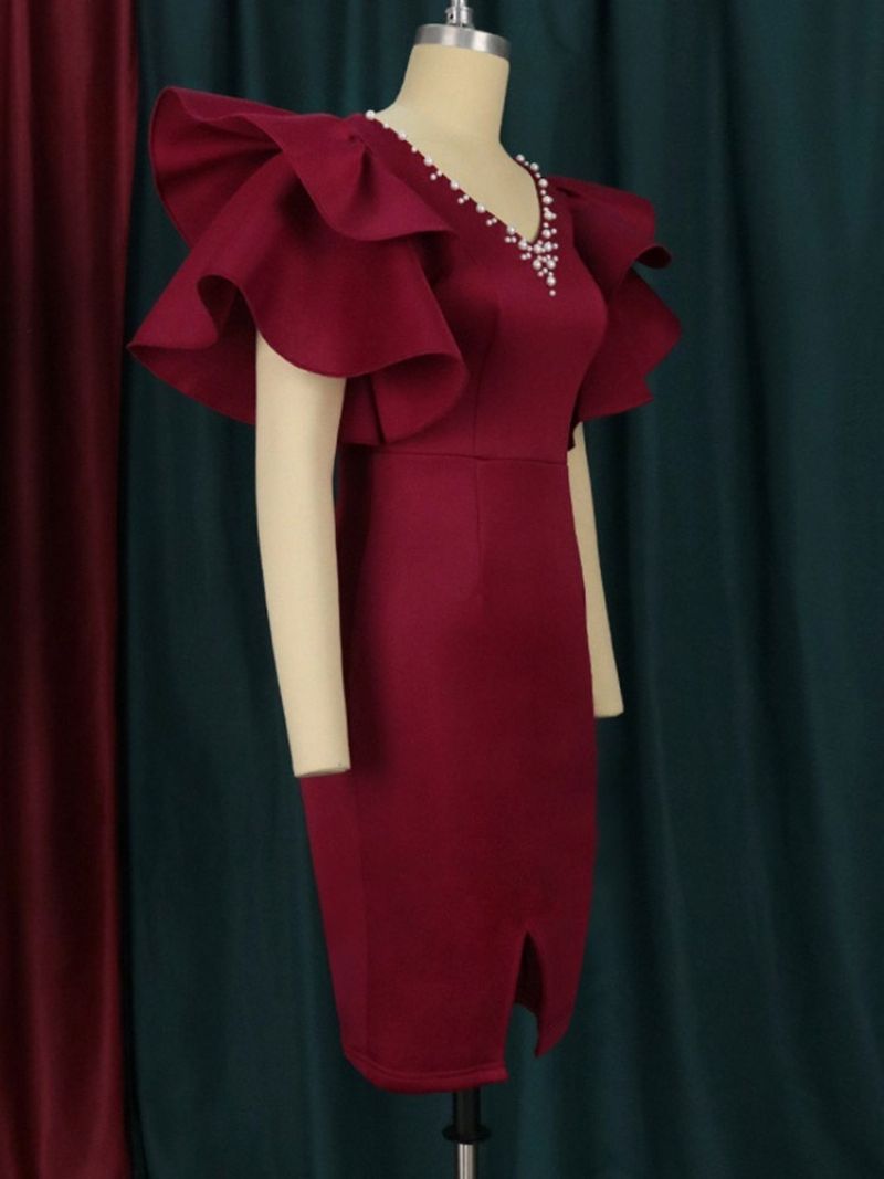 Knælængde V-Hals Kortærmet Sommer Office Lady Bodycon Kjole