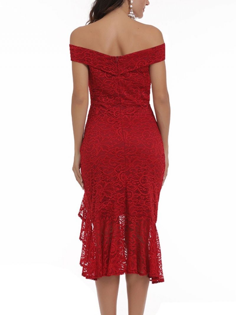 Kortærmet Off Shoulder Mid-Calf Western High Waist Kjole