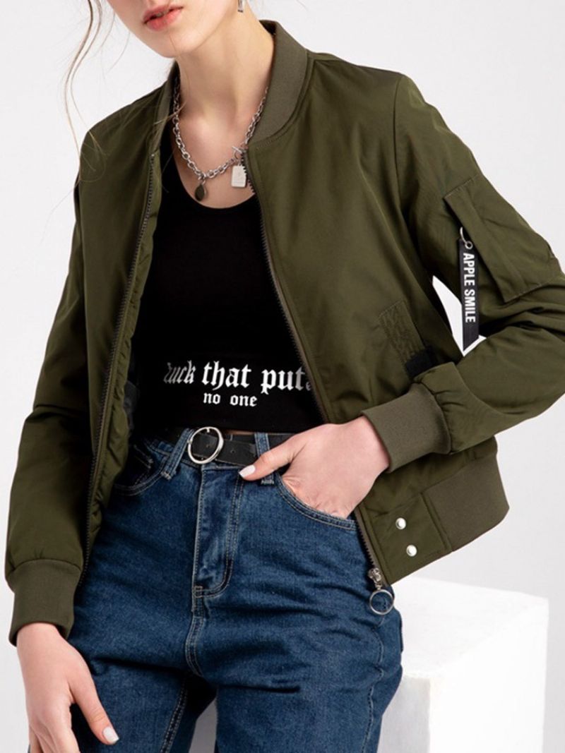 Langærmet Almindelig Efterårsjakke Med Lige Lynlås