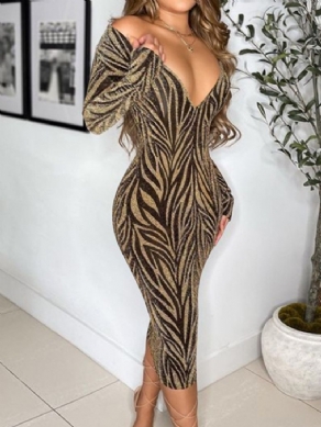 Langærmet Mid-Calf V-Hals Mid Waist Pullover Kjole