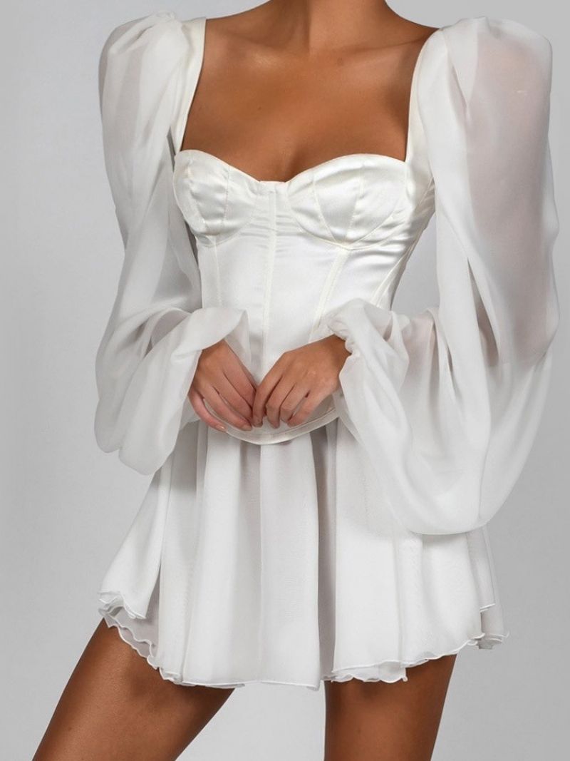 Langærmet Over Knæet Gennemsigtig Standard-Talje Lanterneærmekjole