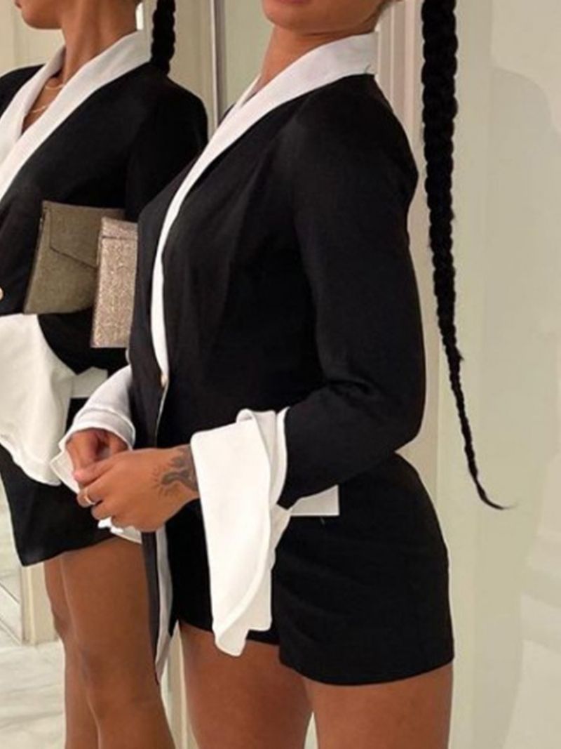 Lapel Langærmet Farveblok Fjeder Mellemlængde Casual Blazer