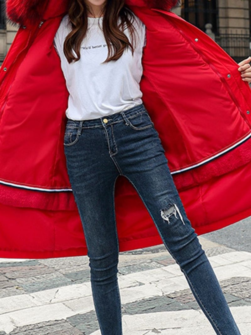 Lomme Enkeltradet Tyk Lang Bomuldspolstret Jakke