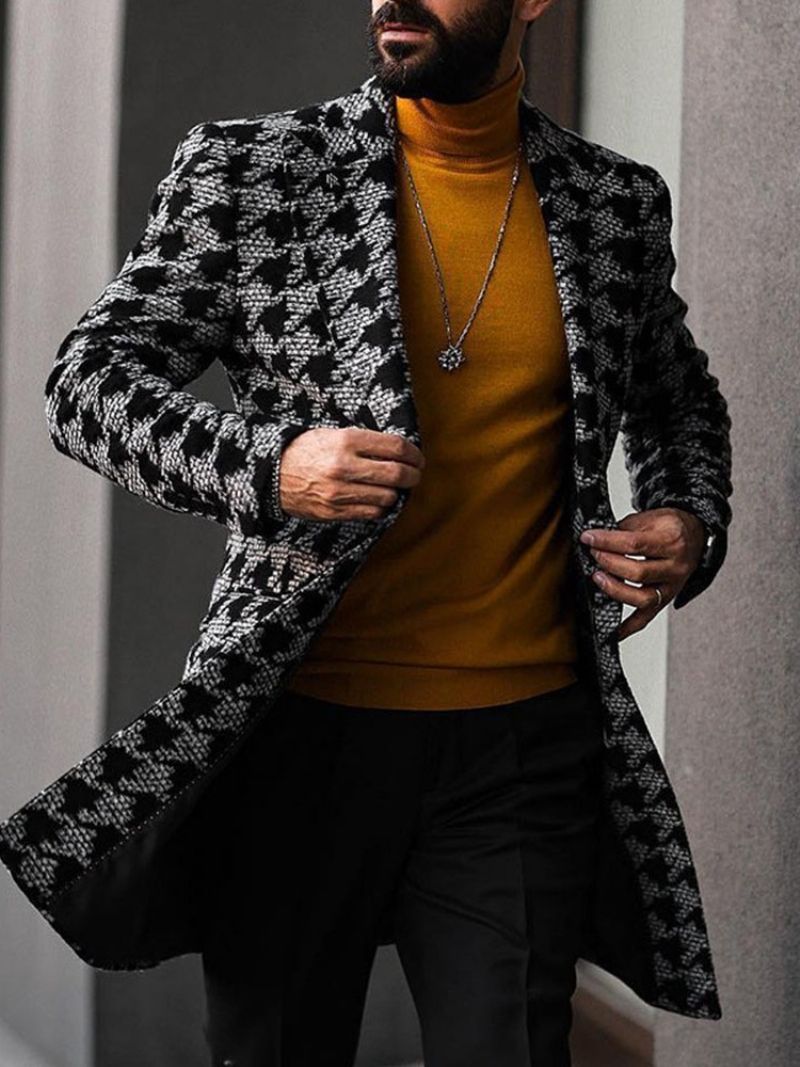 Mellemlængde Print Med Hakket Revers Lige Dobbeltradet Frakke