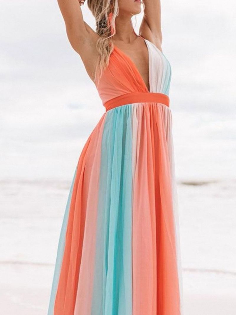 Mesh Ærmeløs V-Hals Pullover Ekspansion Maxikjole