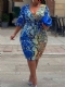 Mid-Calf Trekvart Ærme V-Hals Western Bodycon kjole Stor størrelse