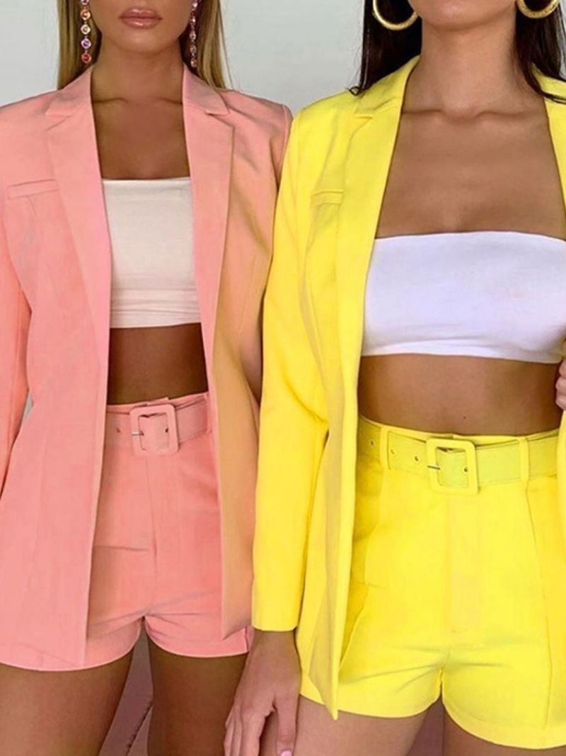 Mode Lomme Almindeligt Lige Kvinders Todelt Sæt Korte Sæt