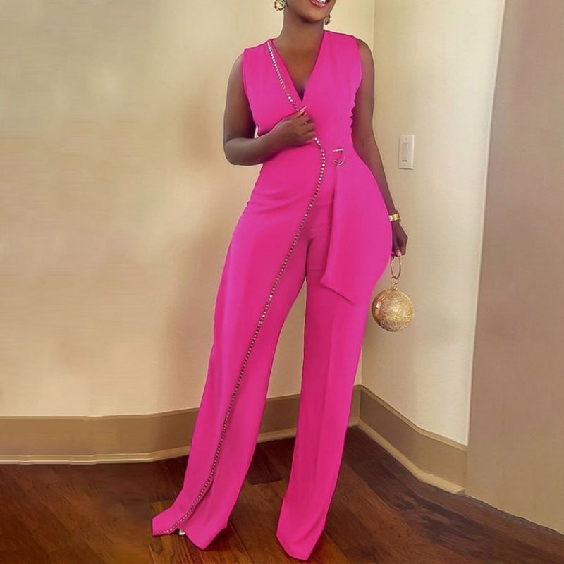 Office Lady Fuld Længde Nitte Lige Skinny Jumpsuit