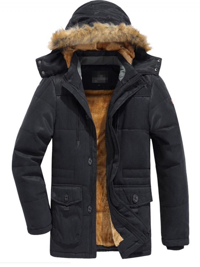 Patchwork Hætte Mellemlang Lynlås Europæisk Dunjakke Til Mænd