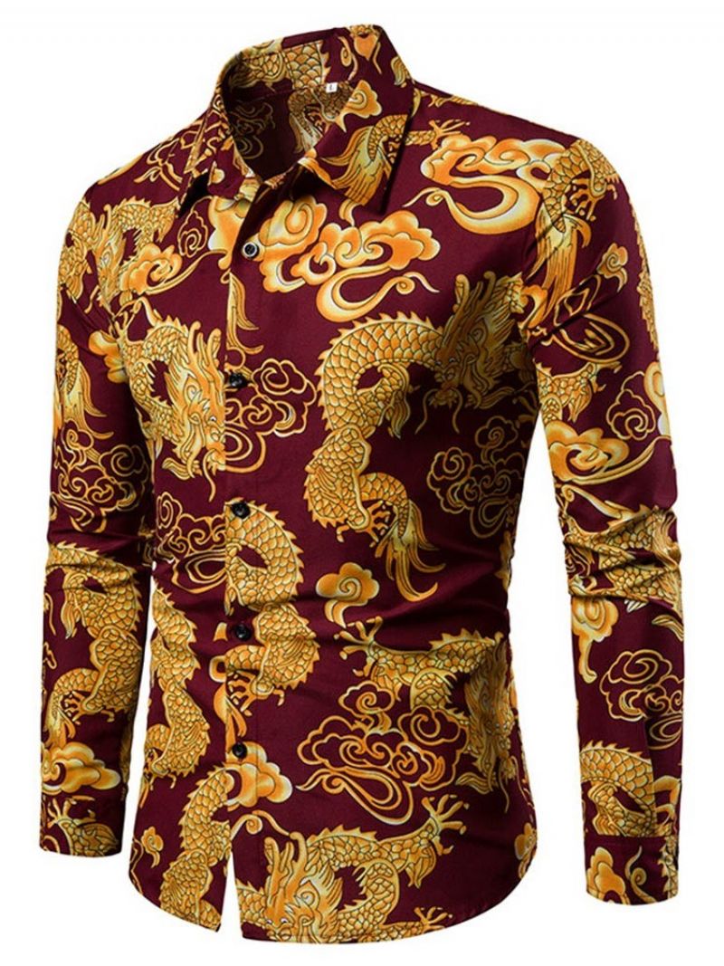 Print Europæisk Revers Enkeltradet Herreskjorte