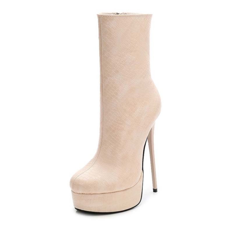 Pu Rund Tå Platform Stilethæl Dame Ankelstøvler