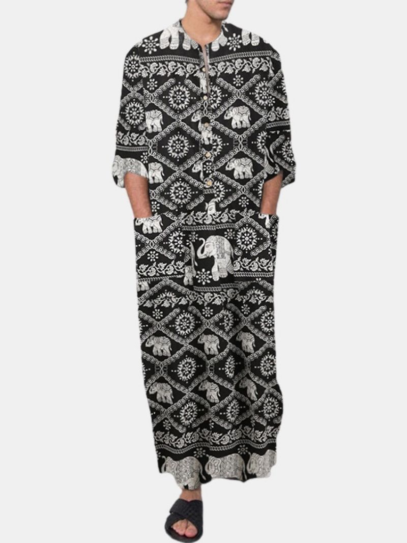 Rundhalset Etnisk Print Lige Efterårsskjorte