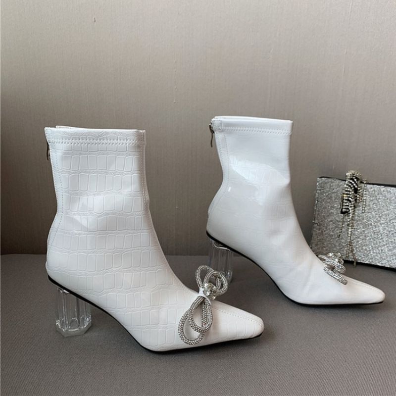 Ryg Lynlås Chunky Hæl Spidse Tå Bue Ankelstøvler