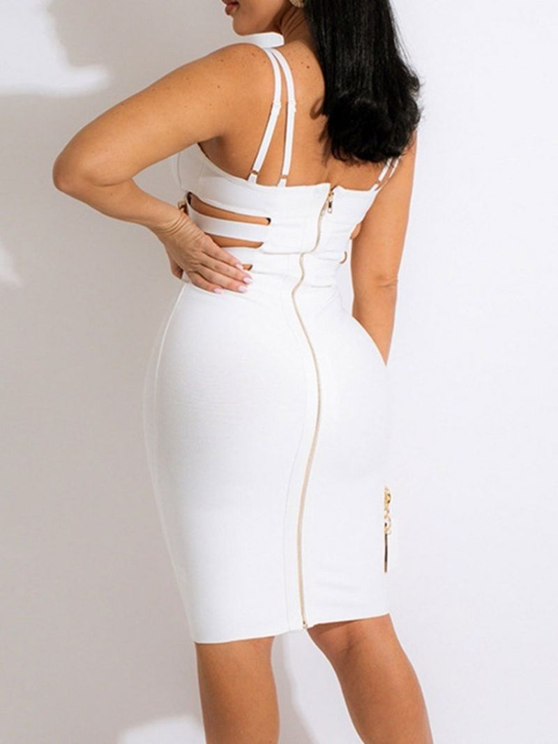 Rygløs Knælængde Ærmeløs Spaghetti Strap Mode Bodycon Kjole