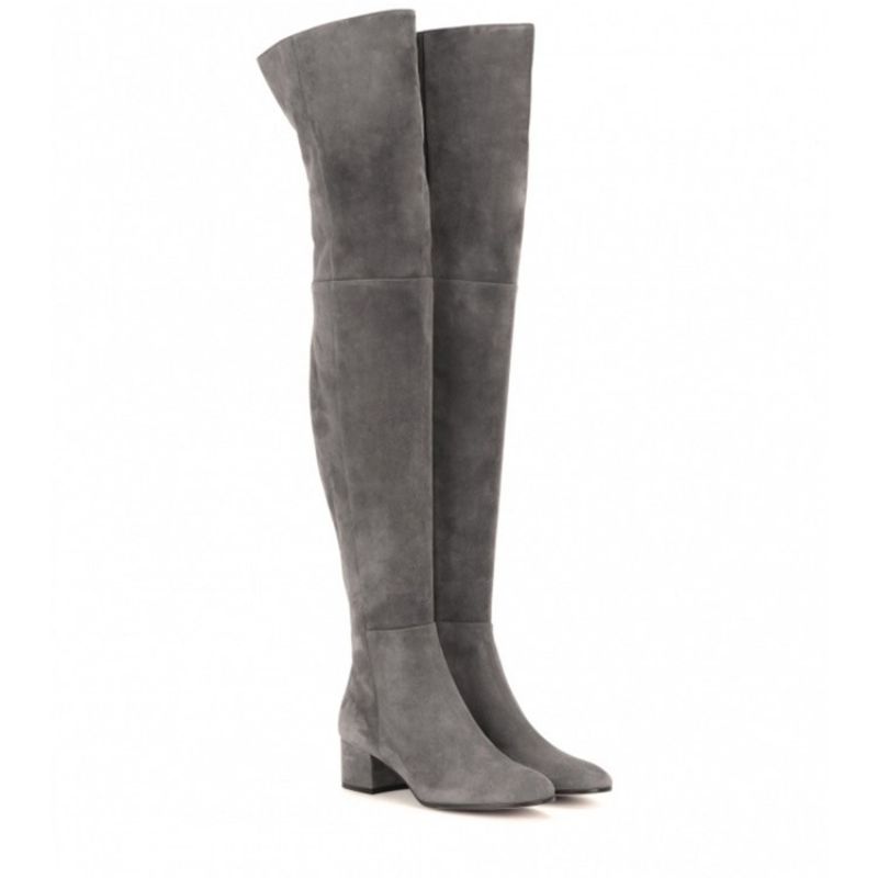 Side Lynlås Rund Tå Chunky Knæ Højhælede Støvler