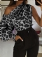 Skrå Krave Leopard Asymmetrisk Mellemlang Langærmet Damebluse