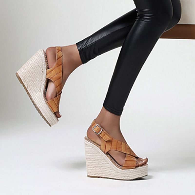 Spænde Kilehæl Åben Tå Almindelig Platform Sandaler