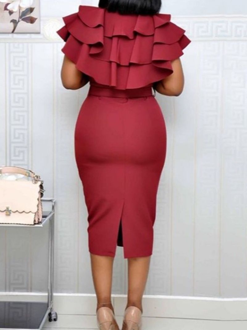 Split Kortærmet Midt-Kalv Almindelig Flæseærmet Bodycon-Kjole