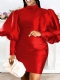 Standkrave Langærmet Over Knæet Mode Almindelig Kjole