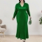 Stor størrelse Falbala Ankel-Længde V-Hals Fall Pullover Maxi Kjole