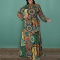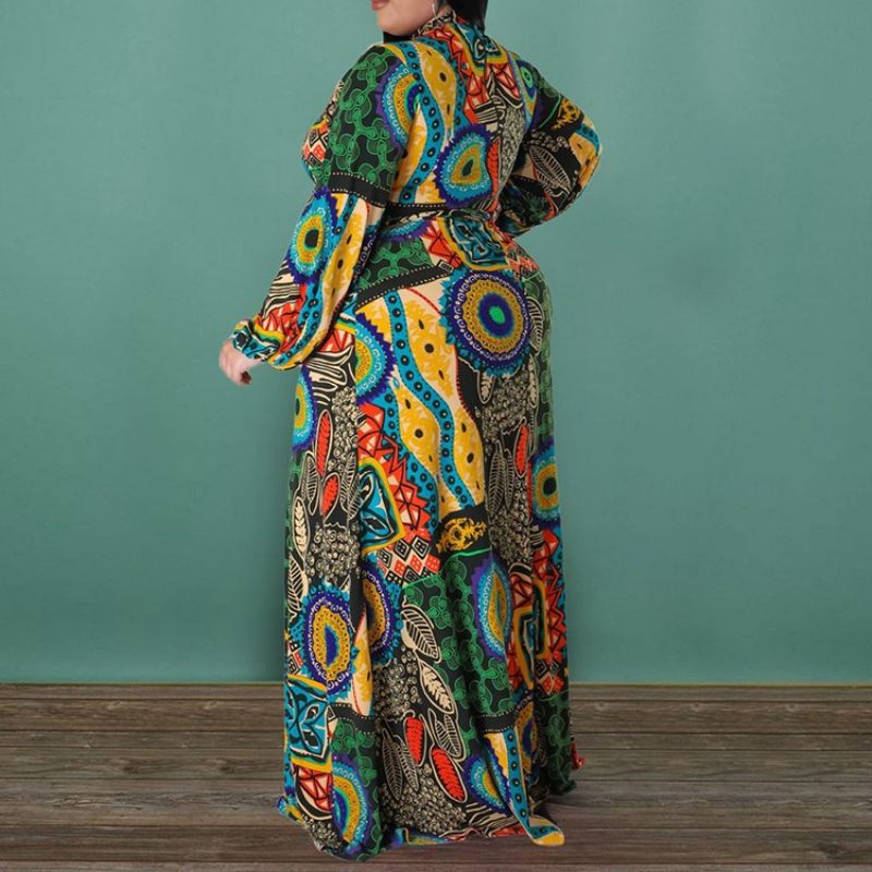 Stor størrelse Print Rundhals Langærmet Floral Fall Maxi Kjole
