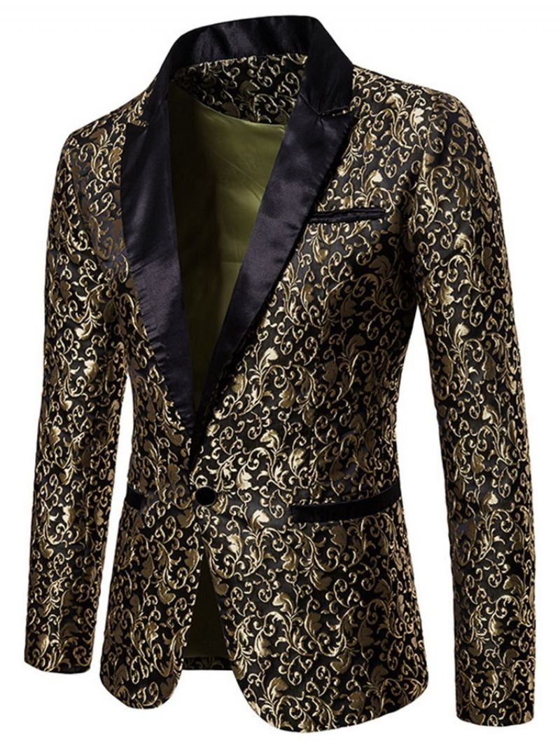 Trykt One-Knap Hak Lapel Mænds Tuxedo Blazer Kostume