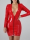 V-Hals Langærmet Over Knæet Lynlås Almindelig Kjole